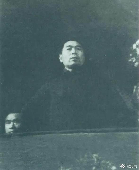 圖為周恩來(lái)在中國(guó)共產(chǎn)黨第七次全國(guó)代表大會(huì)上發(fā)言。