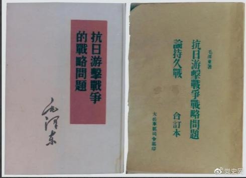 1938年5月,毛澤東發表《抗日游擊戰爭的戰略問題》。圖為當時的部分版本。