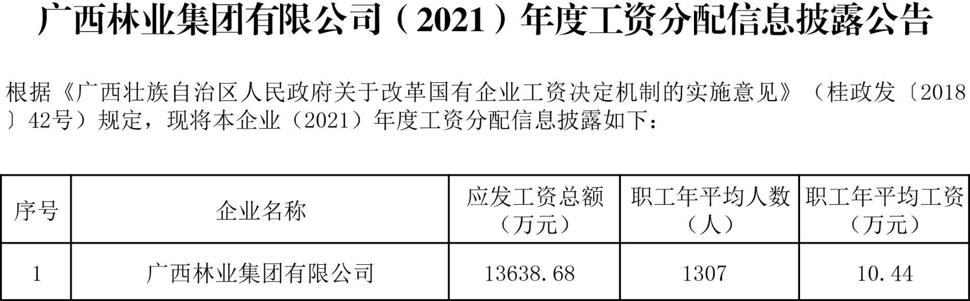 廣西林業(yè)集團有限公司(2021)年度工資分配信息披露公告